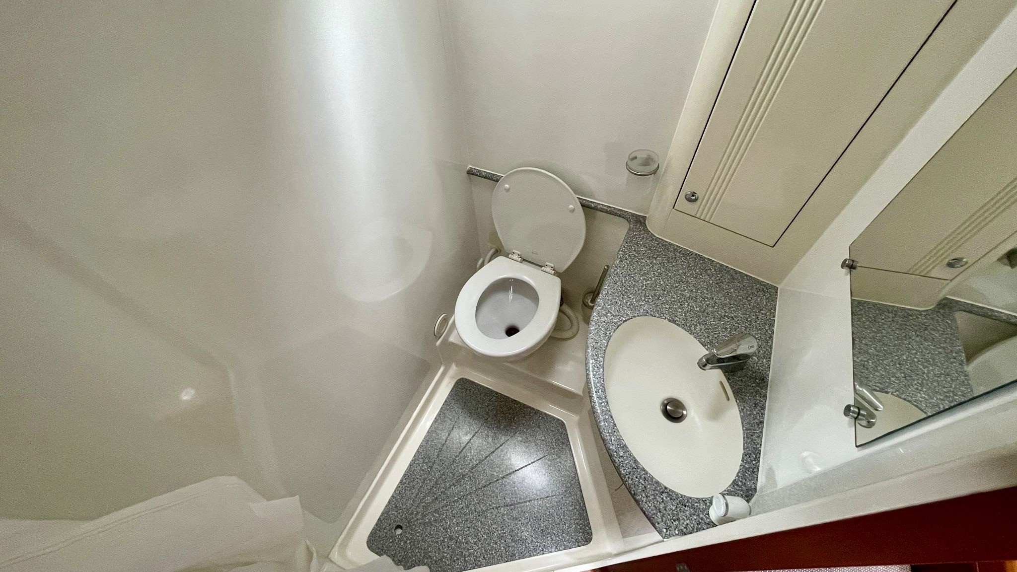 Interior: Spacious cockpit, owner's version with two cabins, two heads, saloon, galley, and navigation station.